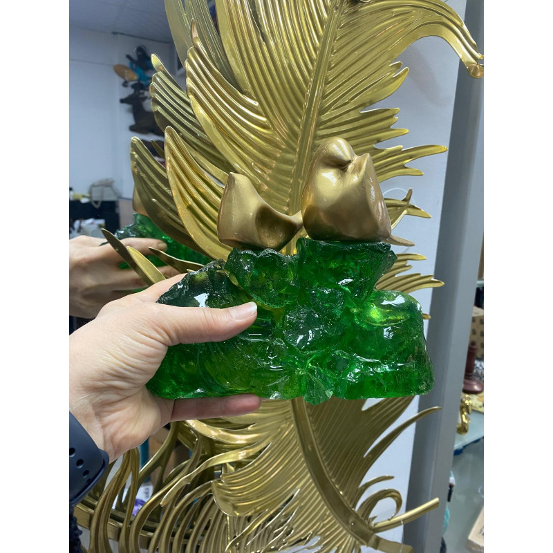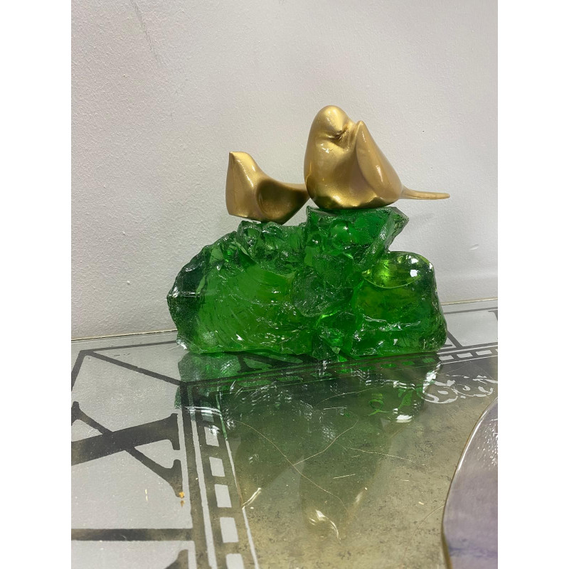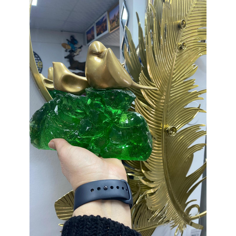 Zümrüt Yeşili Epoksi Kayalıkta Kuşlar Biblosu 20x17cm