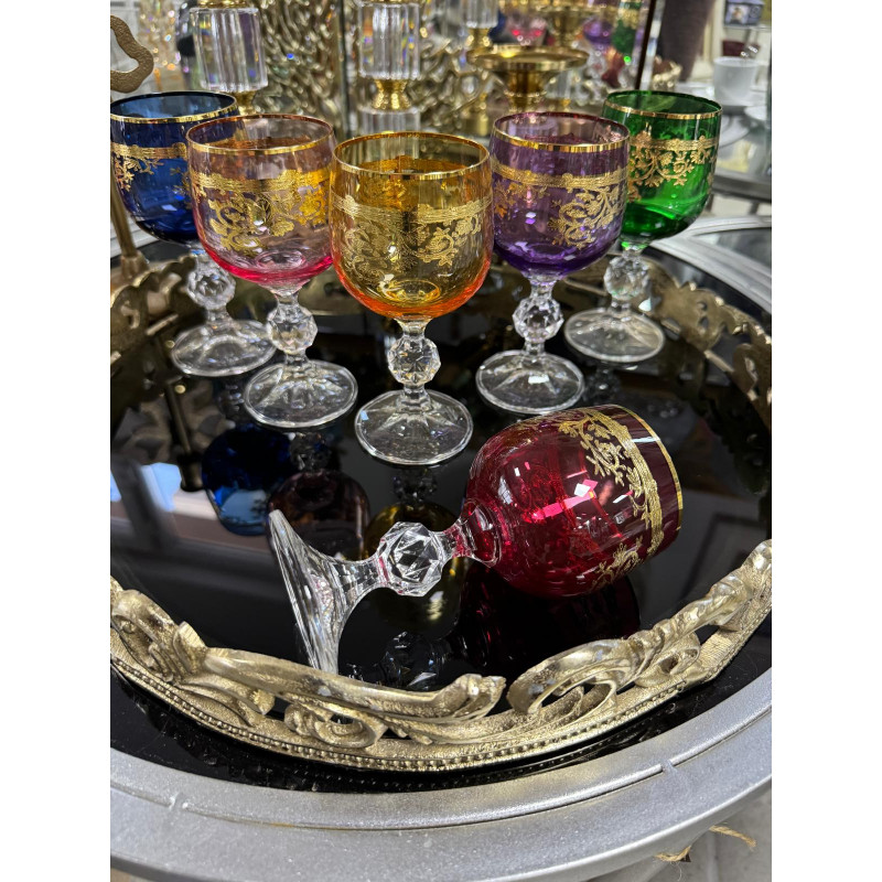 Bohemia Kristal Renkli Fırça Yaldız 24 K Renkli Kahve Yanı Su Bardağı 150ML