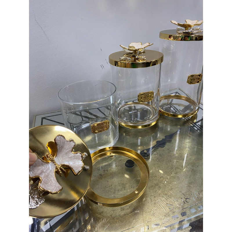 Sedefli Gold Detaylı Çay Şeker Kavanozu 3 Lü