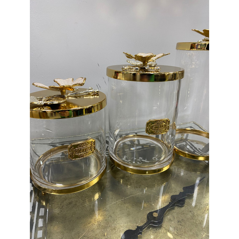 - Zarif tasarımı ile süslenmiş, ve gold detaylarıyla göz alıcı bir görünüm sunar.; - 1 litre hacmiyle çay ve şeker ihtiyacınızı rahatlıkla karşılar.; - Altın rengiyle mutfak dekorasyonunuza şıklık katar.; - Gıda ile temas için güvenli cam materyalden üretilmiştir.; - Elde yıkama önerilir, böylece uzun ömürlü kullanım sağlanır.; - 3 parçadan oluşan set, hem çay hem de şeker saklama imkanı sunar.1000ml-750ml-500ml