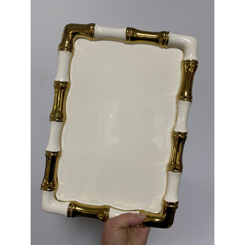 - Modern tasarımıyla dikkat çeken bambu desenli dikdörtgen sunum tabağı, sofralarınıza şıklık katacak.; - 34 x 24 cm boyutlarındaki geniş yüzeyi ile çeşitli sunumlar için ideal bir alan sunar.; - Yüksek kaliteli porselen materyali sayesinde uzun ömürlü kullanım ve dayanıklılık sağlar.; - Tek parça halinde sunulan bu ürün, kolay ve pratik bir kullanım imkanı sunar.; - Elde yıkanması önerilen yapısı ile hijyenik ve kolay temizlenebilir bir yapıya sahiptir.; - Modern stilini yansıtan tasarımıyla her türlü sofra düzenine uyum sağlar.;