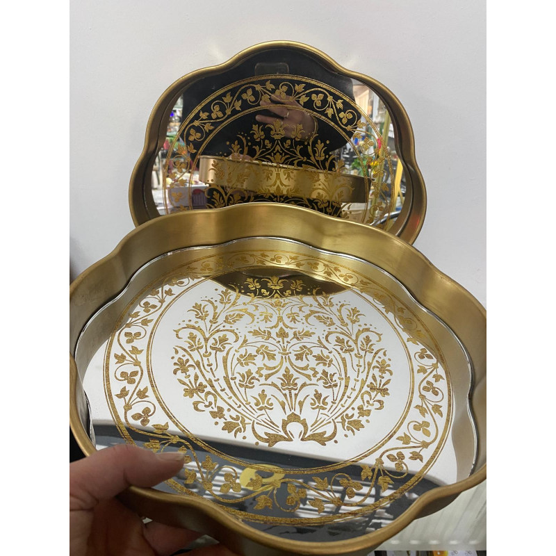 Aynalı 2 Li Dekoratif Motif Desenli Tepsi 34cm-35cm