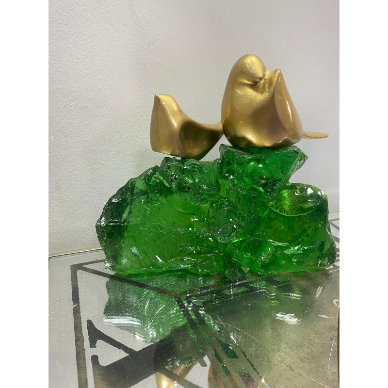 Zümrüt Yeşili Epoksi Kayalıkta Kuşlar Biblosu 20x17cm