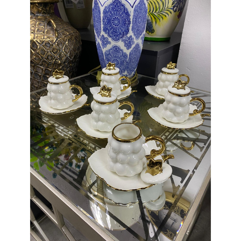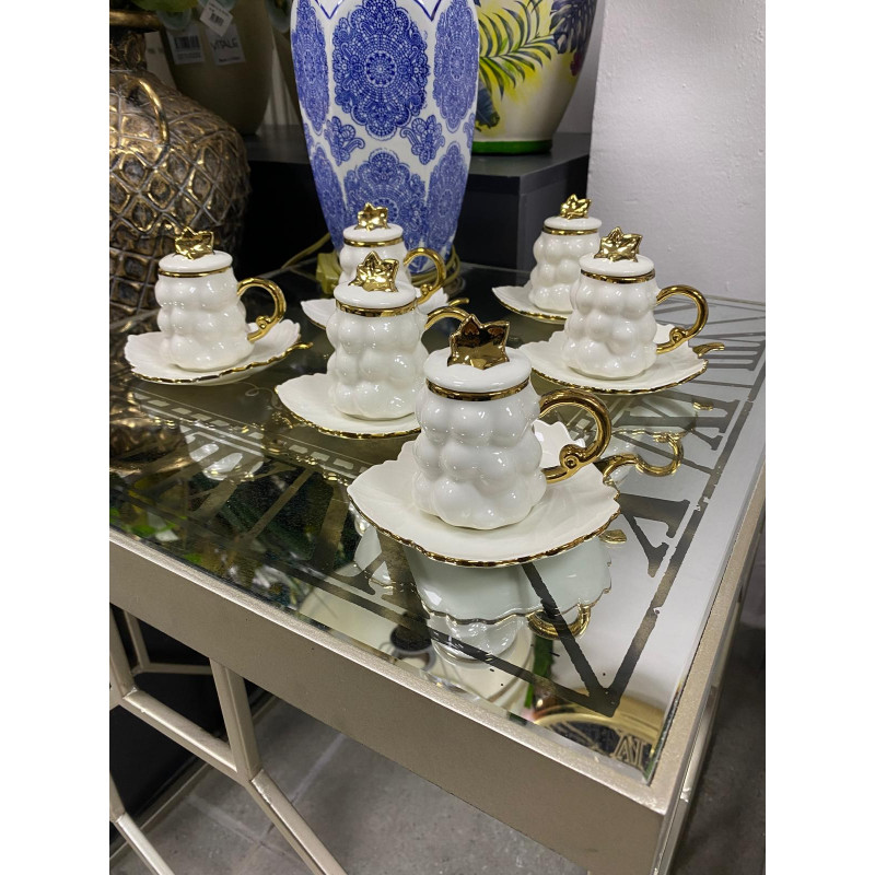 ürün malzemesi porselen gerçek altın yaldız kullanılmıştır .El yapımı bir üründür 6 kişilik 12 par..
