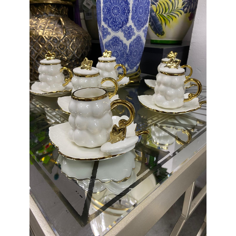 Altın Yaldızlı El Yapımı Wintage Kahve Fincanı 6 Lı
