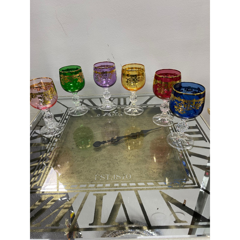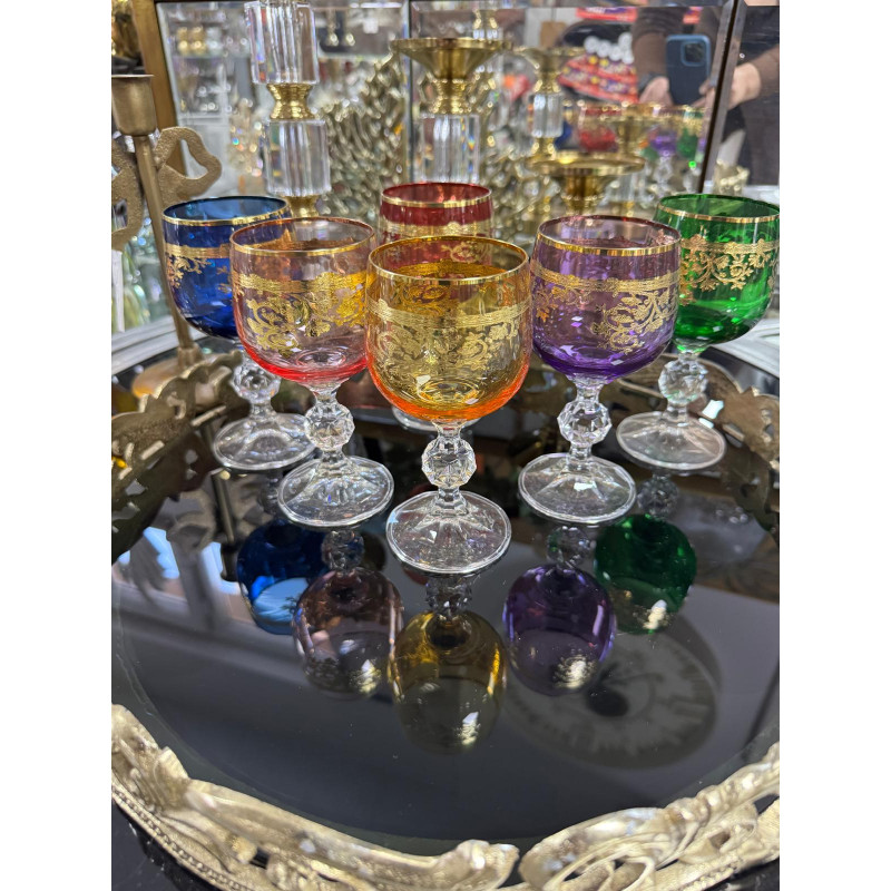 Bohemia Kristal Renkli Fırça Yaldız 24 K Renkli Kahve Yanı Su Bardağı 150ML