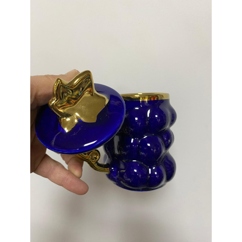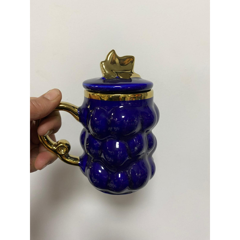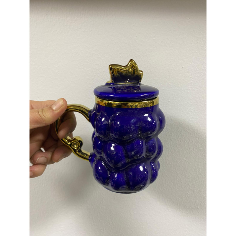 Lvn Porselen Üzüm Desenli Kapaklı Kupa Lacivert