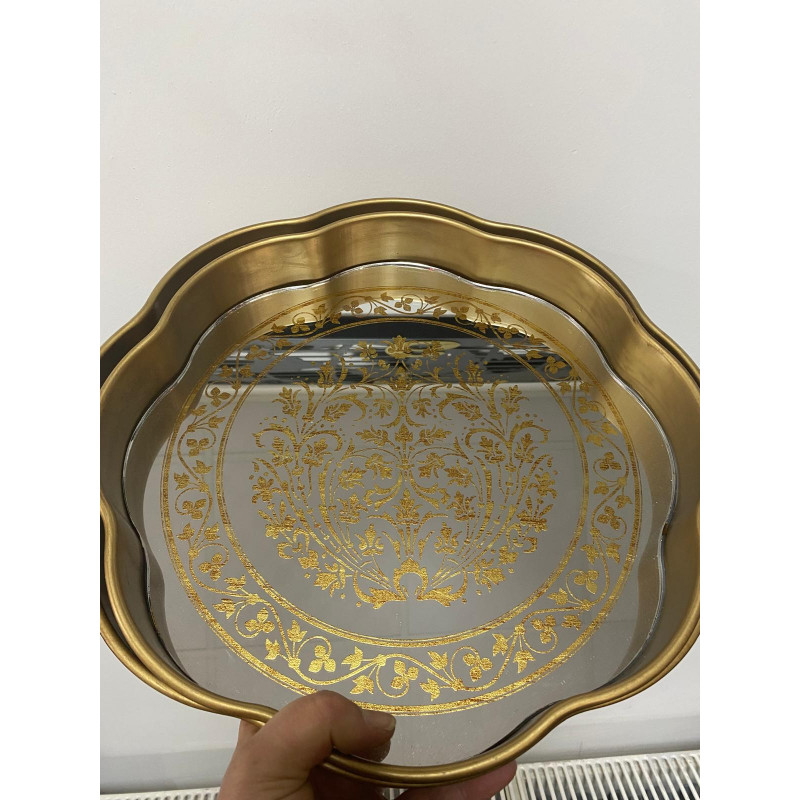 Aynalı 2 Li Dekoratif Motif Desenli Tepsi 34cm-35cm