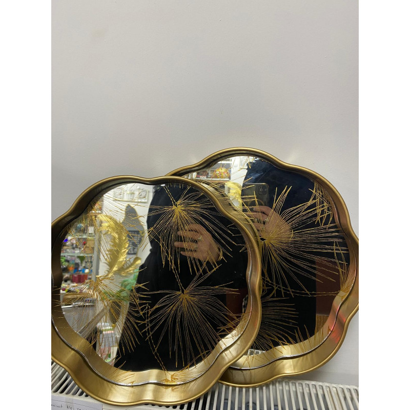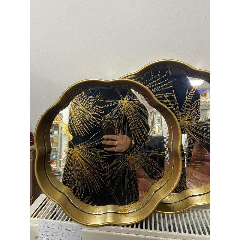 Aynalı 2 Li Dekoratif Tepsi Dal Desenli 34cm-35cm